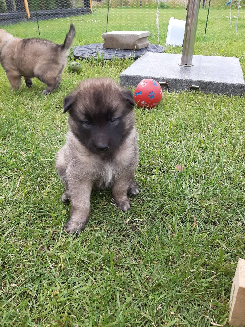 De pups, 4 reutjes en 3 teefjes zijn vandaag 14 juni 2025 geboren. Ze groeien goed, slapen veel maar zijn ook lekker aan het bewegen.